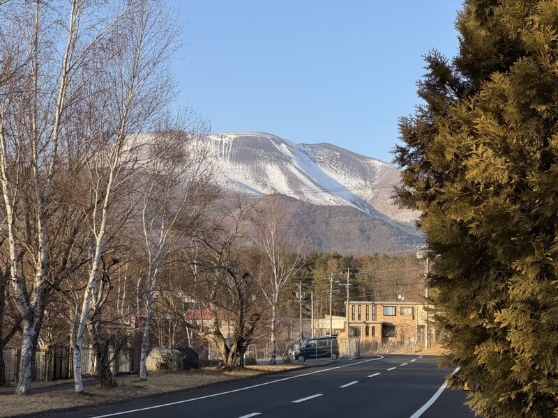 宿の周りを散歩すると、雄大な浅間山がすぐ近くに見えました。