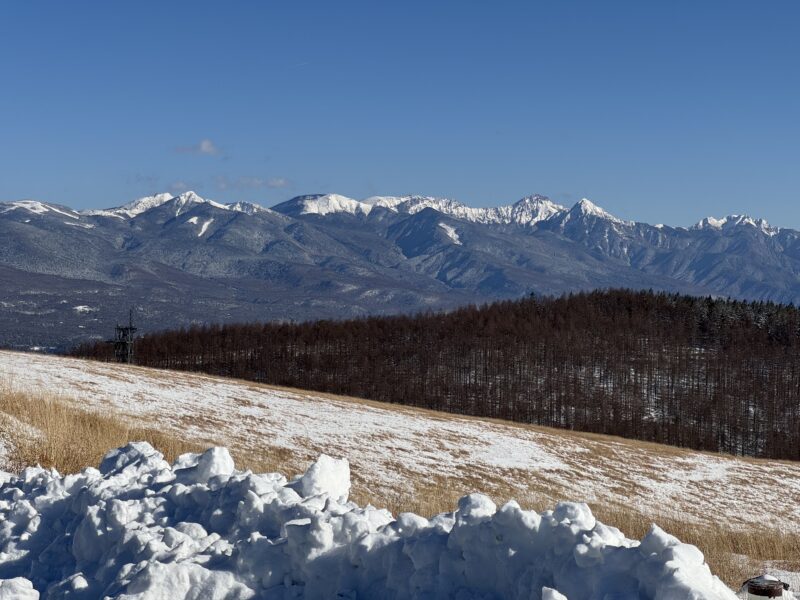 いつものように諏訪で食料の買い出しをして、霧ヶ峰経由でホテルに向かうと、富士見台から眺める雪をまとった八ヶ岳連峰と・・・