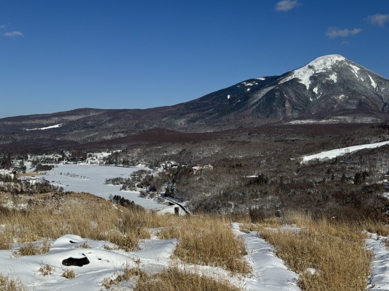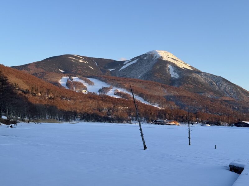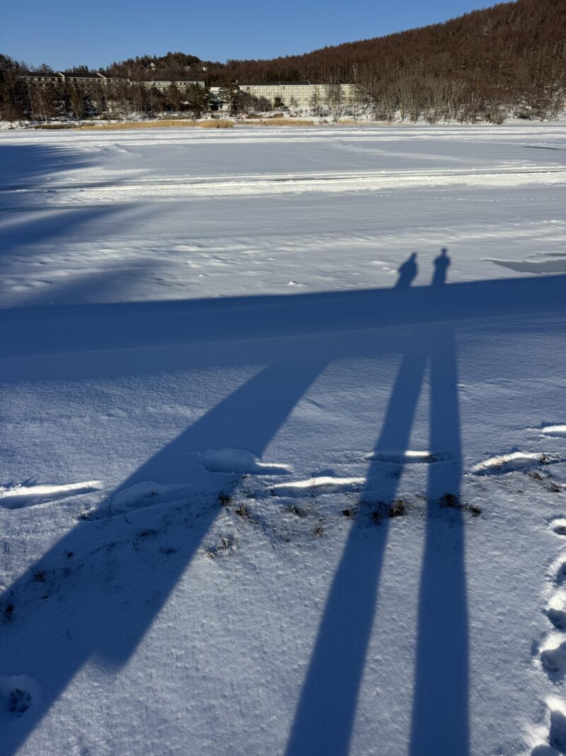 白樺湖は氷結していましたが、蓼科山の雪は少なめで、気温は低いですが、快晴で日差しに温かみがあります。