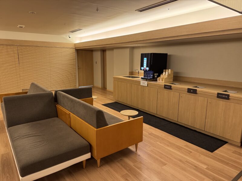 リニューアルしたホテルでは、部屋のソファが新しくなり、湯上がりラウンジ(写真↓)が新たに設けられ、午後はここでソフトドリンクが飲み放題なのは嬉しいです。