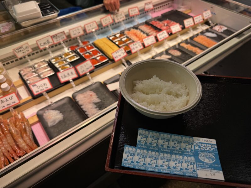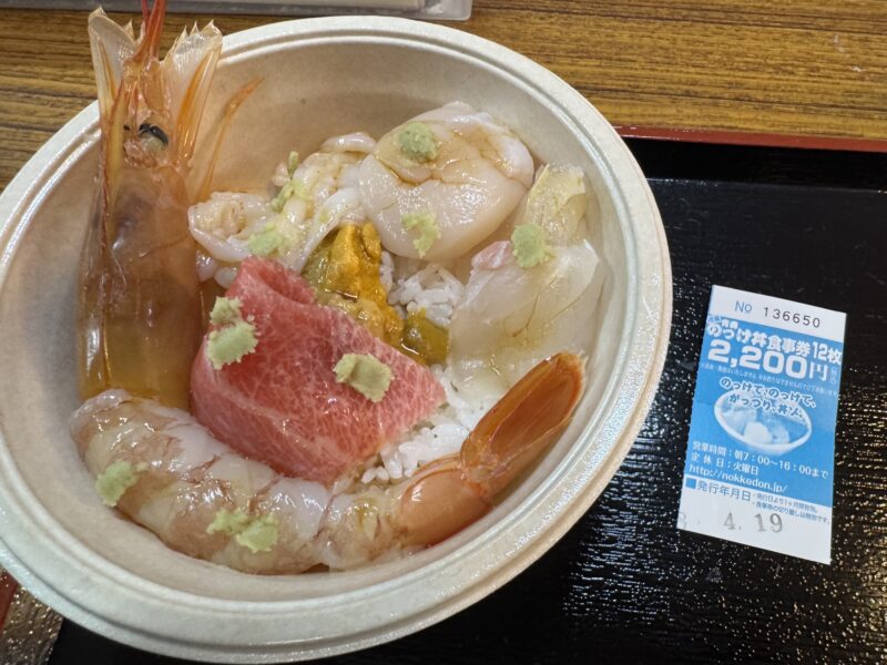 すぐに下船して青森魚菜センターまで歩いて行き、名物ののっけ丼を朝食にいただきました。