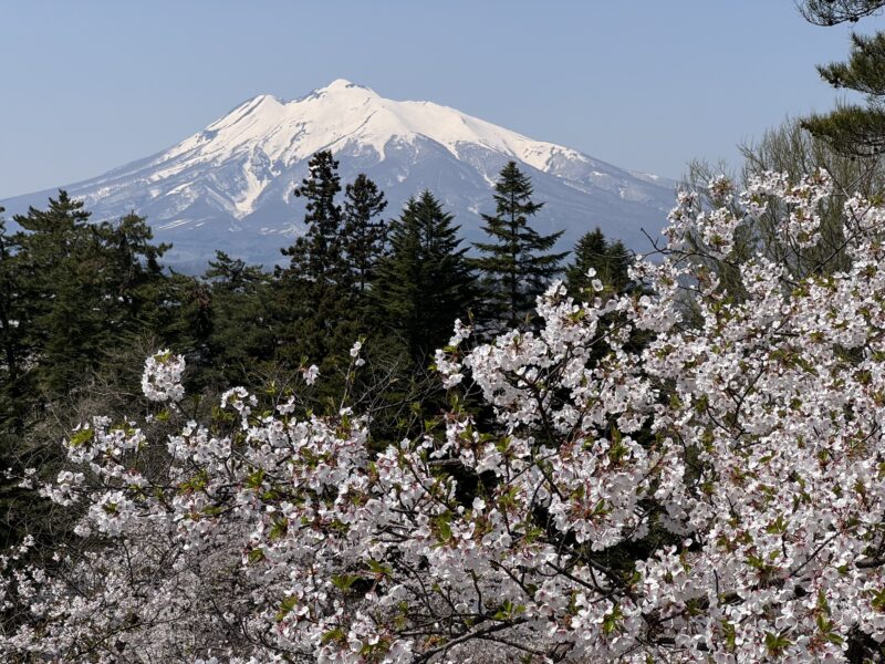 本丸の近くからは、まだ雪をたっぷり残した岩木山を望めました。