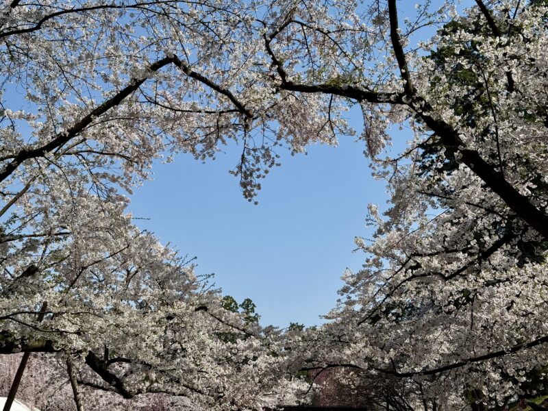 桜の木がハート型を作っている人気スポットも混雑していましたが、何とか写真を撮れました。