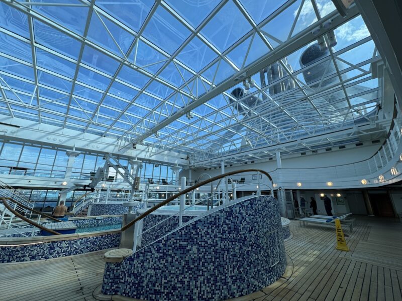 ビュフェの後ろがプールで、ジャグジーは使うかもしれないけど、寒いアラスカクルーズでプールに入る人はあまりいなそうです。