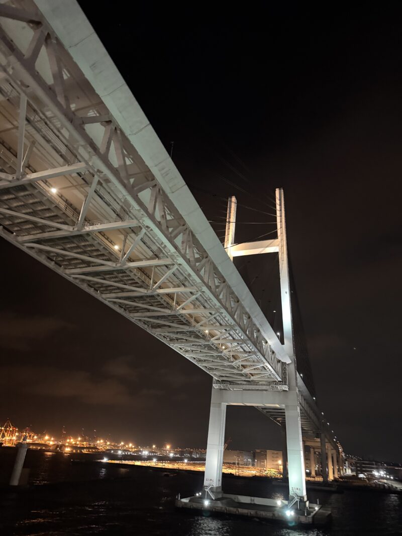 23時に出港した後は、横浜ベイブリッジをくぐる景色を楽しみました。